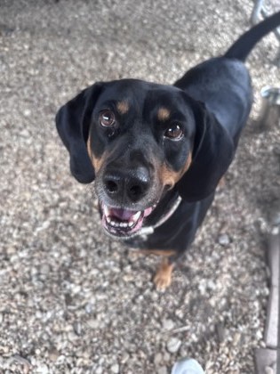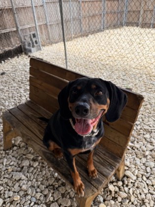 Honey is a 5-year-old, 75-pound coonhound with a heart full of love and a tail that never stops wagging. True to her name, she's as sweet and gentle as can be - no jumping, just a tail wag and a big ol' hound smile for everyone she meets!