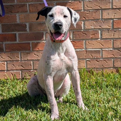 Name: Aloe (short for Alopecia - yes, really) ?????Age: maybe 10 months?Breed: 100% Mystery Mutt (maybe hound/pointer?)?Current Fur Status: Coming soon! I have no contagious demodex mange so give me a month and I will have a full coat of fur,!