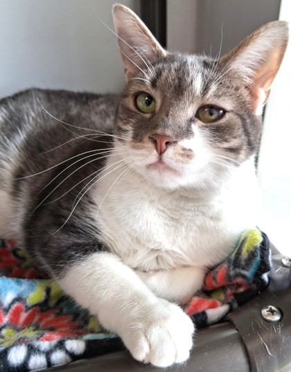 Even now, I'm still shy and a little skittish, but I'm also very sweet once I know you. While I'm not a fan of being held, I like to sit nearby, keeping you company while you read, rest, or move through the quiet rhythms of your day. And when I feel truly comfortable, I'll start to talk to you in soft little meows; it's my way of saying, I'm here and I like being with you.
