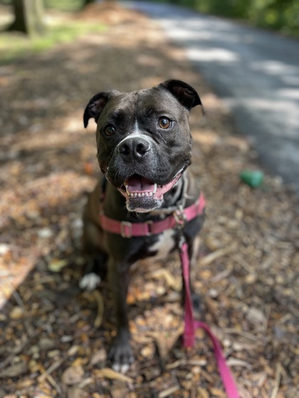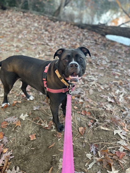 Hi, my name is Lilo. I just spent the best week with one of my friends at the shelter. She took me home with her and I got to spend the night there! My foster mom said I was the perfect houseguest. I always ate all my breakfast and dinner and took treats gently. I would get really excited when mom reached for my harness and leash because it meant we got to go out and explore. I love to go for walks and smell ALL the things. Everything is interesting to me like the flags waving in the breeze and the guy cutting branches off of trees. Mom said I walk really well for a young puppy.