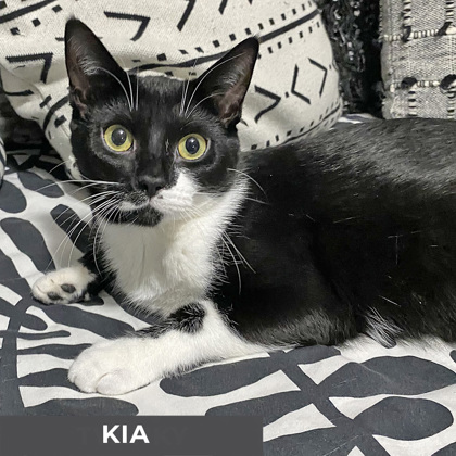 Kia is a playful, independent girl with a charming personality all her own. She enjoys exploring, engaging with her environment, and showing affection in the ways she knows best. As she continues to build confidence, Kia is learning that people can be pretty wonderful too - especially when they respect her boundaries. Once she trusts you, Kia will happily seek out daily attention and ask for her favourite scratches. She thrives with an adopter who appreciates her independent spirit and allows relationships to grow at a comfortable pace. A calm, quiet home without young children would be the perfect setting for Kia to truly shine.