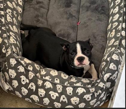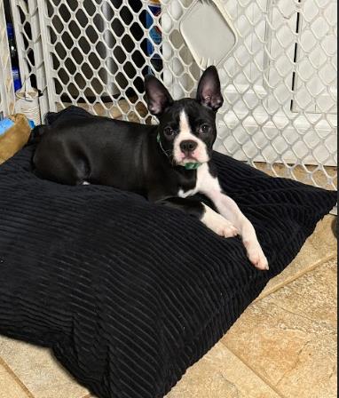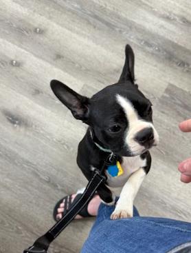 This smart little pup has mastered the doggy door, responds to "sit" and "come," and is motivated by cheese (who isn't?). She's partially housebroken, leash trained, and learning fast. Monica sleeps through the night in a cozy enclosure and patiently waits for her foster's "okay" before starting her day. She's doing fantastic and would be easy to continue training.