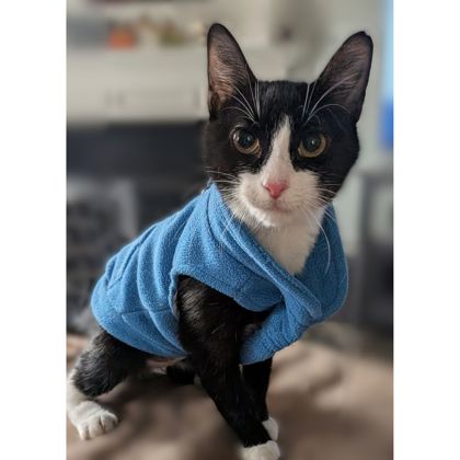 I enjoy playing, but my favorite thing is cuddling. Whether I'm stretched out beside you, curled up in your lap, or soaking up all the love, I'm happiest when I'm close to my people. I have an incredibly soft coat and a built-in mask (hence the name Catwoman), which just adds to my charm.