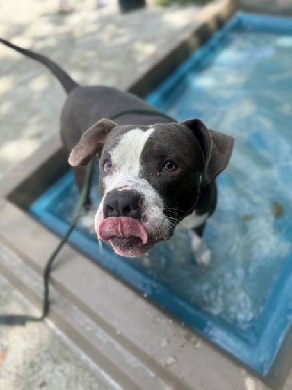 Garret is a big, goofy lovebug who's happiest when he's with his people. He was originally found as a stray, but he hasn't let that bring him down! Whether he's splashing in the pool, sniffing around the yard, or exploring the great outdoors, Garret is always up for a good time, as long as it means spending time with his favorite humans. He is open to meeting older kids and other lowkey dogs who match his vibe.