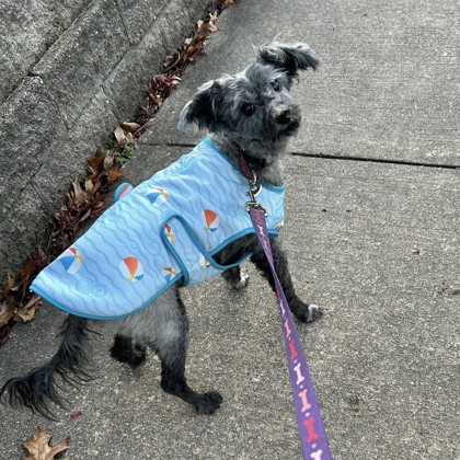 He's been doing wonderfully with his pittie foster brother and even enjoys playful moments with the cat. On walks, he's a happy little sidekick, and around the house, he's making big progress with his housetraining and is already pee-pad trained if he can't quite hold it.
