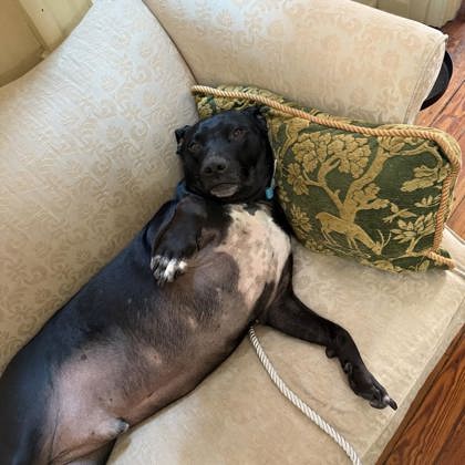 This sweet, social boy adores his people and enjoys making new friends (especially when they have string cheese snacks!). If you ever catch him out with his buddies, chances are high he is sitting right next to them or is even belly up asking for pets! Buckets gets along great with other dogs he's open to meeting older, savvy kids.