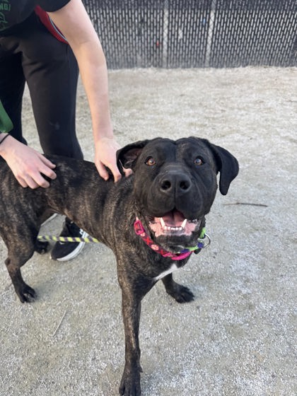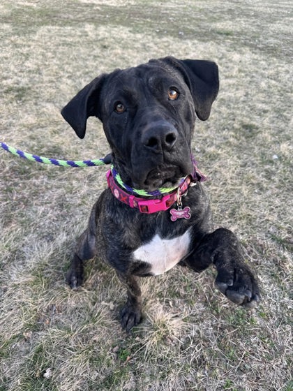 If you're ready for a non-stop dose of silliness, joy, and puppy energy, then look no further! This goofy, happy-go-lucky pup is always on the move, ready to turn even the most ordinary day into an adventure. Erie still has all the playful puppy energy and curiosity to keep you laughing and smiling all day long. She is open to meeting kids that can manager her size and other playful dogs.