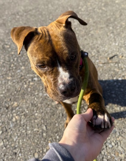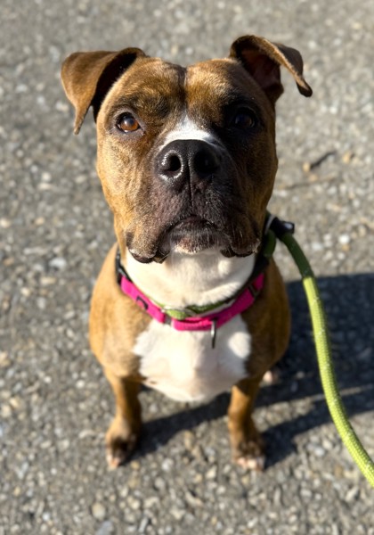 This lovely pup is looking for a new lease on life after spending much of her formative years crated and isolated. She is undersocialized and still learning to trust people, but she has a kind spirit and truly yearns for love and companionship. Since she can be timid with new people and in novel situations, she asks that any kids in the home be 8 and older. She does not have much experience with other dogs, but she is very curious and willing to try making friends with proper introduction. Sadie deserves some independence with the stability of a family to call her own. She has so much potential to be a loyal friend.