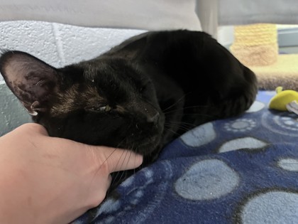 Shadow is a quiet, sensitive soul who prefers to take life at his own pace. He can be a bit nervous and shy at first, but with patience and a few gentle chin scratches, he'll slowly reward you with the softest, sweetest purrs. Shadow would thrive in a calm, quiet home where he has time to decompress, feel safe, and come out of his shell. For the right person willing to move at his speed, Shadow will be a deeply rewarding and affectionate companion.