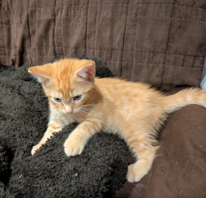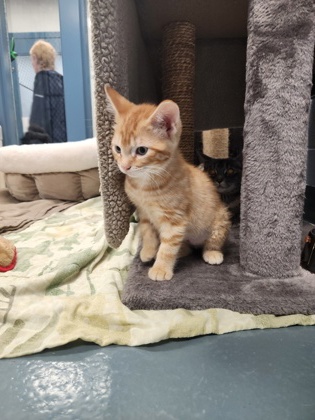 Nugget is an energetic little explorer who loves to climb, play, and follow you around the house. He's confident, fearless, and always ready to make a new friend, human or feline! Nugget loves wet food, playful adventures, and curling up with his sibling (Whisper) after a busy day of mischief. He would thrive in almost any home that can keep up with his curious, playful spirit.