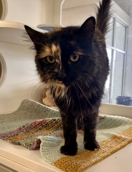 Meet Sam! Sam is a very sweet long-haired tortoiseshell with a gentle soul and a soft, fluffy coat to match. She loves calm company, cozy spots, and being admired for the beautiful girl she is. Sam is currently on a vet-prescribed special diet, so she'll do best with an adopter who's comfortable maintaining that plan and building a good relationship with their veterinarian to support her ongoing health. With the right care, Sam will be a loving, loyal companion who brings quiet joy to your home.