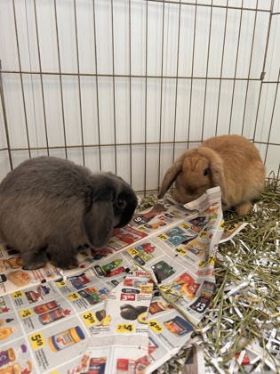 Introducing Huckle! Huckle is a handsome grey bunny with a calm, thoughtful personality and a heart full of love. He might take a little time to trust new people, but with a soft voice and some patience, he'll soon show his curious and tender side. Huckle is completely devoted to Holly, often seen snuggled up beside her or grooming her gently. Together, they make an inseparable team - balanced, loving, and full of quiet charm.