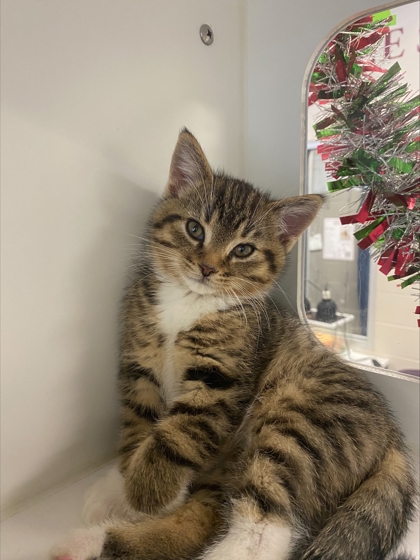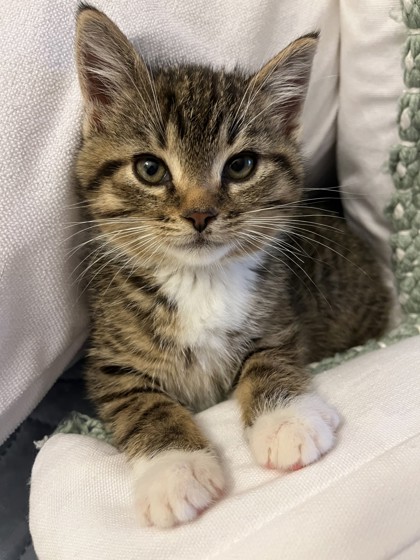 Meet Clarke! This playful little guy is ready for his forever home. He loves to play and is quite the typical active kitten ready for lots of love and attention. He would be the cutest little edition to a home that is willing to love him!