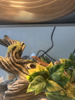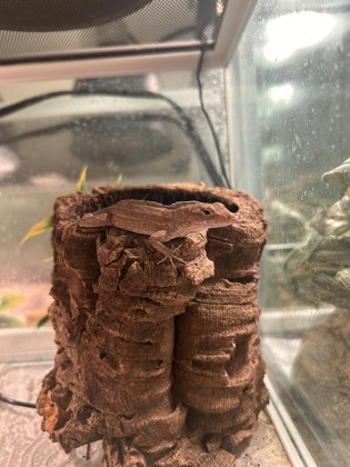 His favourite activities include basking under his heat lamp, munching on tasty mealworms, and hanging out in his hidey-huts.