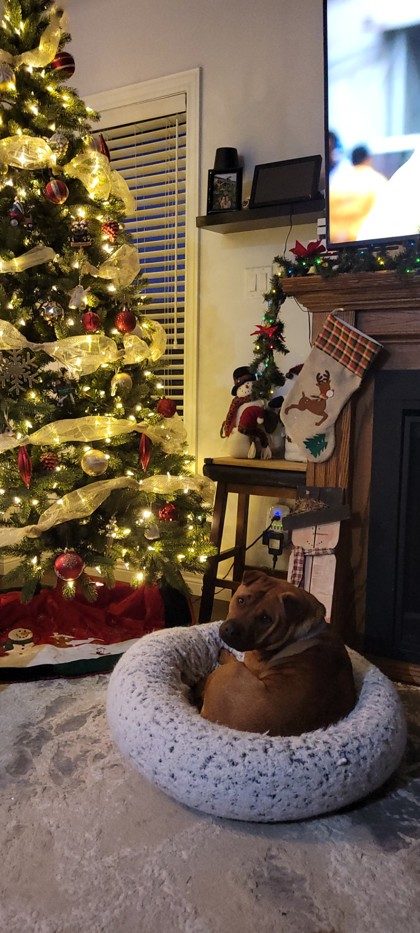 Moderate to low energy - Loves going for walks or cuddling on the couch. Would recommend enrichment when left alone.