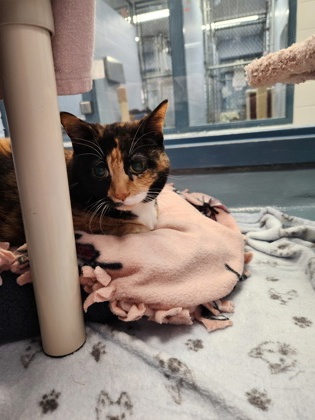 Meet Doug, a gorgeous calico kitty with the most stunning patchwork coat! Don't let her unusual name fool you, Doug is a charming mix of elegance, affection, and all the personality. She's a lady who knows what she likes, and she isn't shy about showing it! This lovely kitty adores people and affection, but on her terms. Underneath her lovable exterior is a tender little soul searching for a warm lap to call her own! Her purrs, head bumps, and irresistible calico charm will win your heart instantly.