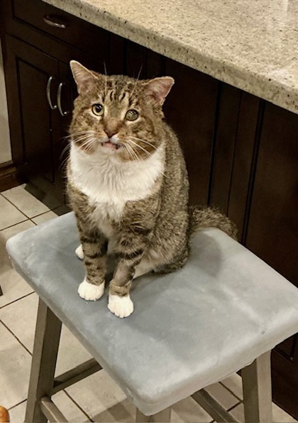 Captain commands attention without demanding it! He loves being near people and keeping watch over the action. His favorite perch? The captain's chair in the kitchen, of course! After all, no good ship should sail alone. While Captain isn't a fan of being picked up, he's a true connoisseur of chin scratches and pets. And when it's playtime, he transforms into an adventurous sailor, just toss him a ball or spring, and he'll chase it across the room with pure joy. Captain is an easygoing and independent crewmate who gets along with the grandchildren when they visit his foster home and thrives with people around. His foster mom also reports she has found him to be tidy in their home and he doesn't seem to scratch the furniture!
