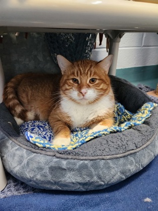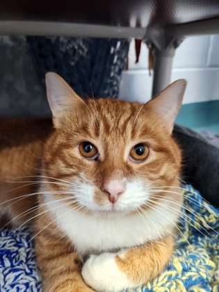 Razzle is a sweet, but slightly shy orange boy with truly dazzling amber-orange eyes that seem to glow when he feels safe and comfortable. While he may take a little time to warm up, once he does, Razzle reveals his gentle, laid-back personality. He would thrive in a calm, patient home where he's given the space and understanding he needs to open up at his own pace. Cozy nap spots and kind humans are the key to winning his heart! But once you do, you'll be rewarded with a sweet companion!