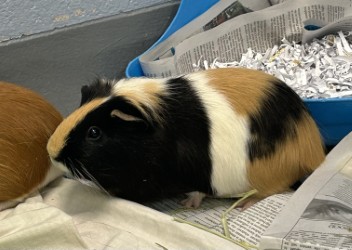 Summer is a gentle girl who enjoys spending time with her sister Rapunzel, eating greens, and taking naps in the afternoon. She is very shy at first but will open up with time once she is comfortable. If you are looking for a pair of guinea pigs to keep you company, then these girls might be the ones for you.