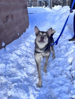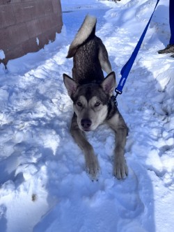 Oslo can be shy, nervous, and a little vocal when meeting new people but once he is comfortable and after he's been given a couple treats he becomes super affectionate and will press up against you for all the pets. Oslo also loves to play outside in the snow whether it's fetch or just running around to burn off energy.