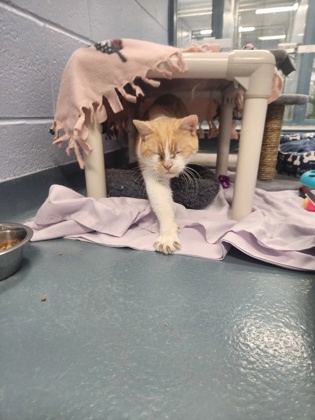 Popcorn is a little golden kernel ready to pop into your life. This orange-and-white boy has an adorably grumpy-looking face that gives him serious character, but don't let it fool you, he's actually a total sweetheart. Popcorn is an affectionate boy who truly enjoys human company. He loves pets, soaks up attention, and brings warm, cozy energy wherever he goes. His slightly stern expression only makes his laid back nature all the cuter, like a tough exterior hiding the softest center.