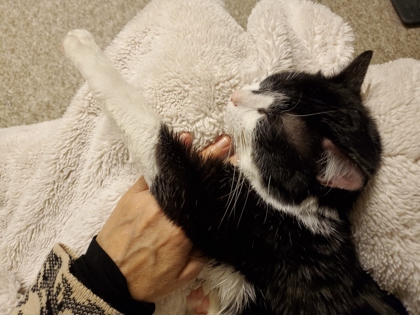 According to his foster, Bjorn is an absolute sweetheart in their home. He's extremely cuddly and affectionate, full of purrs, and loves to curl up on top of you to sleep or sit on your lap. Once he trusts you, he always wants to be by your side for snuggles. He also has a playful side and he enjoys chasing his toys and really adores being brushed and getting head and cheek scratches.