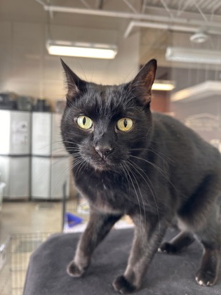 Skye is a beautiful black kitty with a heart as big as her bright, curious eyes. Her favorite thing in the world is affection, and she'll happily soak up every bit you're willing to give. The moment you sit down, Skye will likely hop over and flop right onto your lap, perfectly content to be your cozy little shadow.
