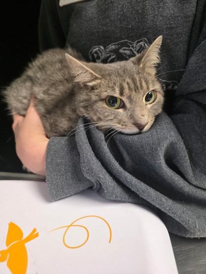 Meet Maple, our beautiful two-year-old grey tabby who just returned from foster care with a blossoming heart and a newfound spark of confidence. When Maple first arrived, she was extremely shy and overwhelmed by shelter life, but her amazing foster family helped her open up little by little. Now, she's showing us her sweet, gentle side more and more each day.