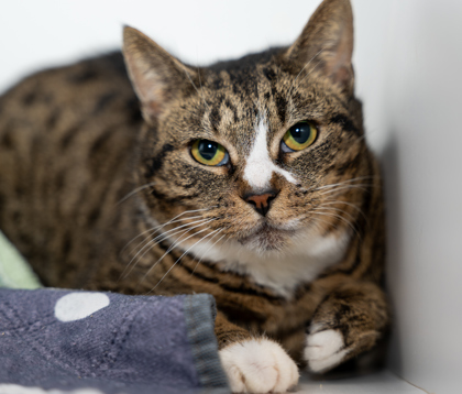 Cuddly Cali has made it her life goal to spread all the happiness and love she can as far as she can. This sweet tabby baby has mastered the arts of loafing and butt wiggles and is on the look out for a home of her own (or with another cat as she had come in with her siblings). Though she may be shy at first, Cali takes her time adjusting to new places and that's okay. However, once she's settled in, you can find her playfully wiggling, wriggling, or maybe loafing somewhere peacefully.