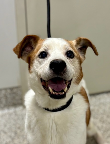 Sebastian is a spunky senior who has plenty of play left in him. He is high energy and lots of fund, and his unique markings help him stand out in a crowd.
