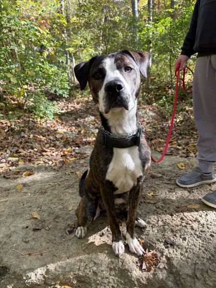 Meet Brick, a vibrant 4-year-old Boxer Pit mix weighing a sturdy 60 lbs, embodying a delightful mix of playfulness and affection. With a soul that radiates rambunctious charm, Brick thrives on quality time spent with his beloved humans, relishing every moment of joy and connection. His exuberance truly shines when he engages in play with furry friends, showcasing his social and playful nature.