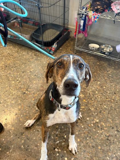 Meet Conner, a 2.5-year-old, 57 lb Coonhound mix with the biggest heart and sweetest spirit! This handsome hound is both dog- and kid-friendly, making him a wonderful companion for a fun-loving family. True to his breed, Conner loves to explore with his nose to the ground-but surprisingly, he's not much of a talker!