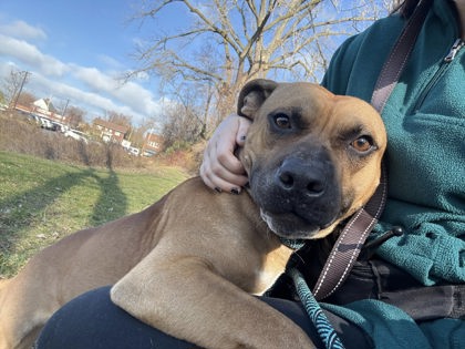Cletus is a pup whose love language is physical touch. He likes to pause to try to clamber onto a lap and get snuggles, and he seems to be reassured by affection. He has a sensitive side and can be tentative about new things (he might respond by pancaking on a walk) - but he looks to his people for guidance and he's willing to be brave with some encouragement.