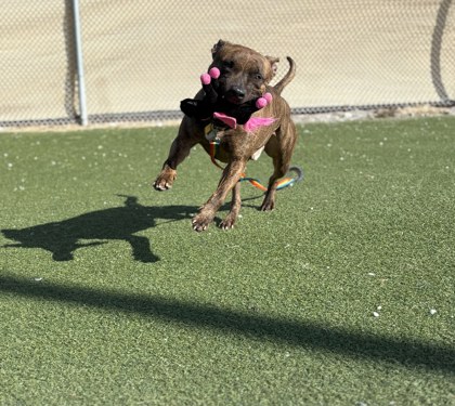 Que is quite playful and has fun with toys while showing off some energetic zoomies. Once he gets that burst of energy out, he'll happily settle in for body scratches - which he absolutely loves.