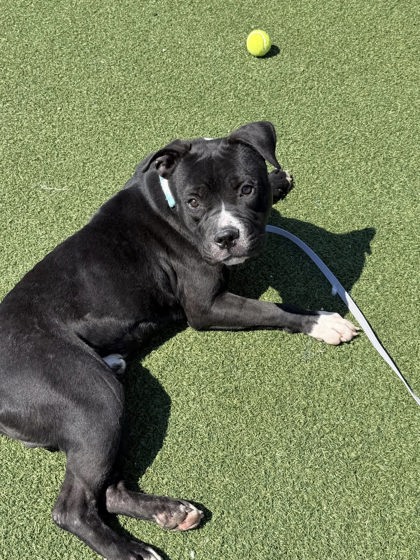 Meet Mandrake-the self-appointed Director of Fun wherever he goes, and proud collector of all toys! At just 14 months old and 61 pounds, this handsome smoosh is a lot like an oversized puppy - equal parts playful goofball and total sweetheart. He's curious about everything (sniff first, questions later), and obsessed with fetch. If there's a toy nearby, it's his. If there's fun happening, he's running the show.