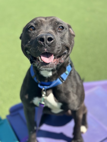 In the play yard, his personality really shines. He's silly, bouncy, and loves to zoom around, but not for too long because he'll come right back to you for pets and cuddles before heading off for another round of fun. Equal parts playful pup and affectionate sidekick.