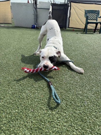 Hi! My name is Dugout! I am pretty new at the kennel and the staff/volunteers are still getting to know me, but here is some basic information: I'm about 2 years old and currently weigh 54 lbs. I am a sweet and curious pup! I am looking for my forever home so if you think I may be your new best friend, please visit the website to request a meet: www.tinyurl.com/meetacitydog