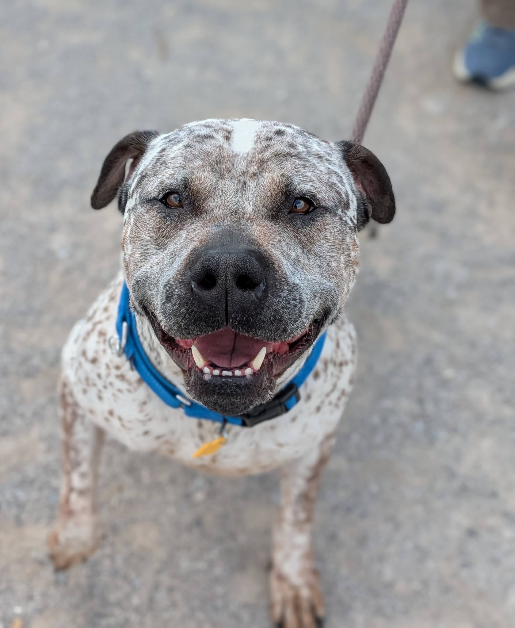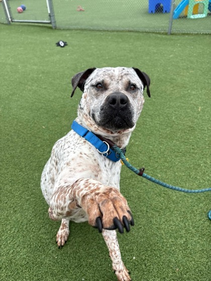 Hi! My name is Derek! I am pretty new at the kennel and the staff/volunteers are still getting to know me, but here is some basic information: I'm about 2 years old and currently weigh 80 lbs. I am a sweet, smart and curious pup! I am looking for my forever home so if you think I may be your new best friend, please visit the website to request a meet: www.tinyurl.com/meetacitydog
