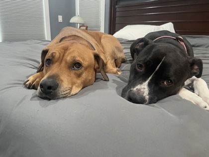 Super affectionate and happy girl, Linda has been on her best behavior and is ready for Santa. She has adapted very well in her foster home and loves to hang out with her people and her new doggy friends. She's almost completely house trained, crate trained and well behaved! She's young enough that she still gets the occasional zoomies but if you have a spot available on your couch, she will happily cuddle up