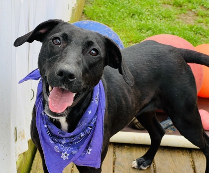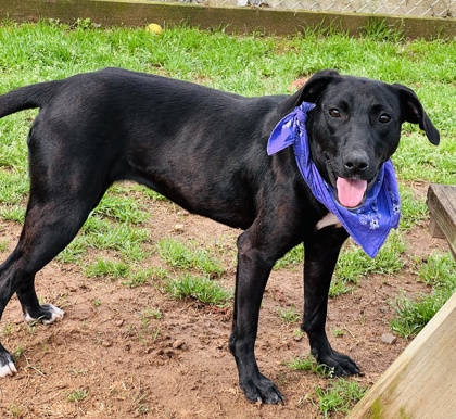 Facebook Update Jan 14: Our beautiful, sleek black velvet lab mix arrived feeling pretty overwhelmed but day by day, she kept pulling up her brave boots further and further and now she's being the ideal foster doggy! YIPPEE!! Joan has done well with dogs at the shelter....very sweet and kind natured, erring on the submissive side. If she had a middle name it would be Gentle. Please ask about her today! Note: 1 yr old; 45lbs.