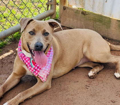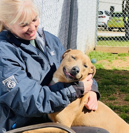 It's been a joy watching SANDY settle in and share her super fun, silly, playful side to us all. Initially kind of meek, she's now greeting us with a huge grin and softly swiveling hips at her kennel gate hoping to be selected for some much needed outside time. Sandy loves her toys. Toss her a rope/ball combo thingy and she'll proudly tote it around and might even toss it up into the air. Does she make some fast zoomies during play time? You bet! Fave activity outside? Hanging out in your lap while exchanging hugs and kisses with her human friends. Our honey jacketed beauty is in good spirits, in good health and can't wait to meet you!! Please ask for Sandy today!!