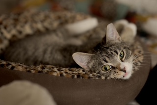 He loves to run and play with his brother Philly, and sister Priscilla, especially when he feels safe and comfortable. Watching him zoom around with his siblings is a reminder that there's a playful, joyful kitty hiding behind that serious expression.
