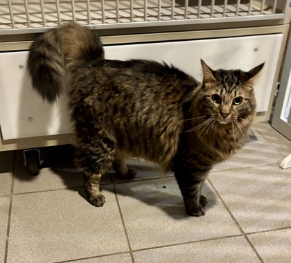 Say hello to Shortbread, who knows his name as Buddy, a magnificently fluffy 3-year-old who bears a striking resemblance to a Maine Coon and comes with the chattiness to match! This lovable 15-pound love bug is an equal-opportunity conversationalist who'll shower you with meows and companionship throughout the day. While he's not the type to curl up in your lap, Shortbread is happiest when his favorite humans are nearby, keeping him company while he supervises (very seriously) from his favorite perch.