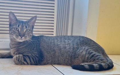 Keeley is a sweet, relaxed girl. She loves to hang out in the cat tree and birdwatch. She likes pets and attention, but does not insist on being in the spotlight. Keeley loves squeaky toys and toys with bells. Wand toy? Stuffed toy? Yes please! Any toy that squeaks is a Keeley favorite. A laid-back girl like Keeley would do well as a single cat, or as a buddy for another friendly cat.