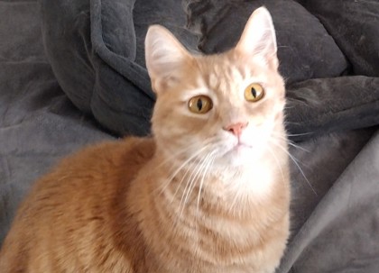 Oliver is an 8-year-old domestic shorthair wrapped in the softest, fluffiest, bunny-like fur and sporting a handsome light orange (buff) tabby coat. He's what experts call a Velcro kitty - meaning wherever you go, Oliver goes. Working? He'll supervise. Relaxing? He'll lap-test your comfort level. Talking? He'll answer back with charming commentary of his own.