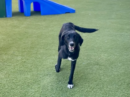 She's still learning the ropes, including how to confidently walk on a leash, but she's making progress every day. Katniss does wonderfully with other dogs and is currently thriving in a large playgroup with both males and females. Because of this, she would greatly benefit from a confident doggy companion in her future home-one who can help show her that the world isn't so scary.