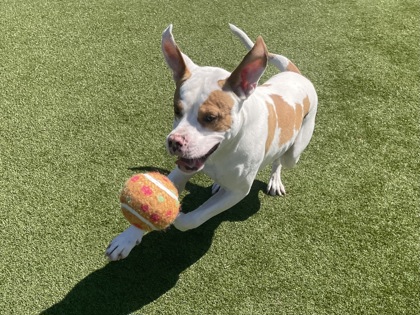 Minilla is a 1-year-old mixed breed with a gentle spirit and a love for life! This fun-loving guy is always ready for action-especially if it involves a game of fetch. Toss a ball, and you've got his full attention!