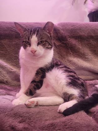 Dan Dan can be pet and is becoming more accepting of affection and being brushed and when he's had enough he will simply get up and move a foot away. He genuinely seems to enjoy being around people and will sometimes follow you from room to room or come out to greet you as you come home. He absolutely loves curling up in the windows and watching the world go by and breathing in the fresh air and will otherwise be splayed out on a fluffy blanket sleeping ‘superman' style with his paws stretched out in front of him. Dan Dan has a deliciously loud purr and will often come sit in front of you at nights waiting patiently for you to play with him. Loves dangly toys and loose catnip toys he can roll around with.
