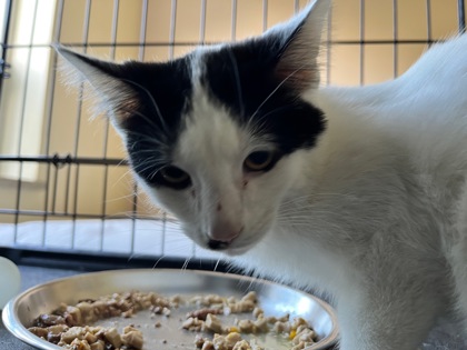 Chaplin is a sweetheart. He's the largest and most timid of the four siblings in my house. He's very food motivated and his shyness disappears with the right treats. Chaplin loves my resident cats and rushes out to greet them. He's shy with me. He now allows me to pet him and hold him for a couple minutes. I have noticed, the more I do this, the longer Chaplin allows me to hold him. He comes to me for Churu treats and wet food. I can pick him up, bathed him and clip his nails. Realistically, Chaplin will need a consistent owner who will pamper this shy boy.