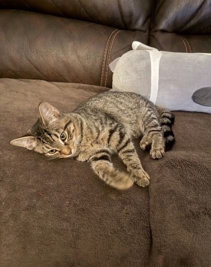 Cake may be a little shy at first, but once she knows you, she'll quickly show you her affectionate side. She loves nothing more than cuddling, belly rubs, and endless pets - always with a steady purr to let you know how happy she is. Gentle and kind, she never scratches or bites and is wonderful during play. This sweet girl has plenty of playful energy and adores all kinds of toys, especially wand teasers. She'll happily zoom through the house, then stretch out for a nap or curl into a cozy ball in her favorite warm spot. Cake also needs a window where she can soak up the sun and watch the outside world - it's one of her favorite pastimes.